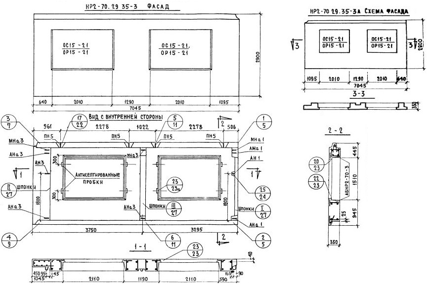 НР2-70.29.35-3   Наружная стеновая панель рядовая по Серии 1.132-1.